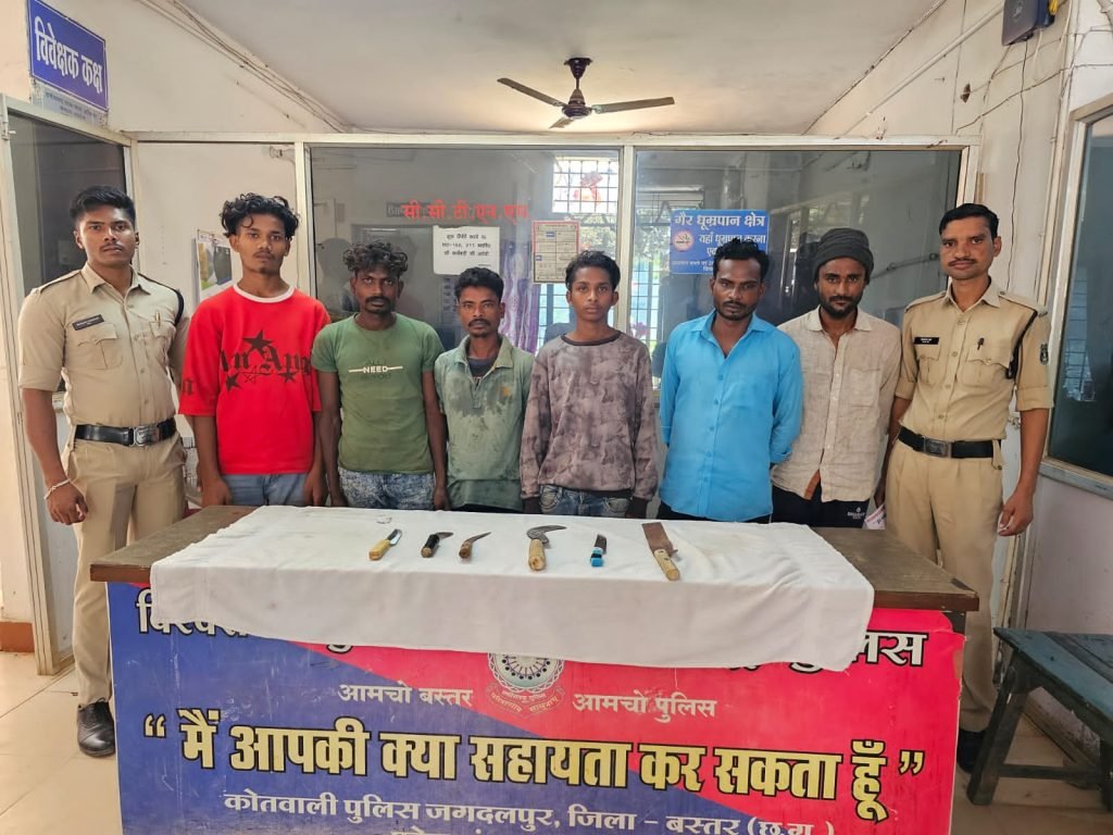जगदलपुर। शहर में चाकू लेकर लोगों को डराने-धमकाने वाले 6 आरोपियों को पुलिस ने पकड़ लिया है। आरोपियों के कब्जे से धारदार चाकू भी जब्त किया गया है। वहीं उनके खिलाफ आर्म्स एक्ट के तहत कार्रवाई करते हुए उन्हें न्यायालय में पेश किया गया, जहां से उन्हें जेल भेज दिया गया है।