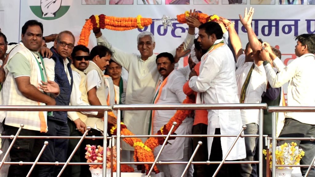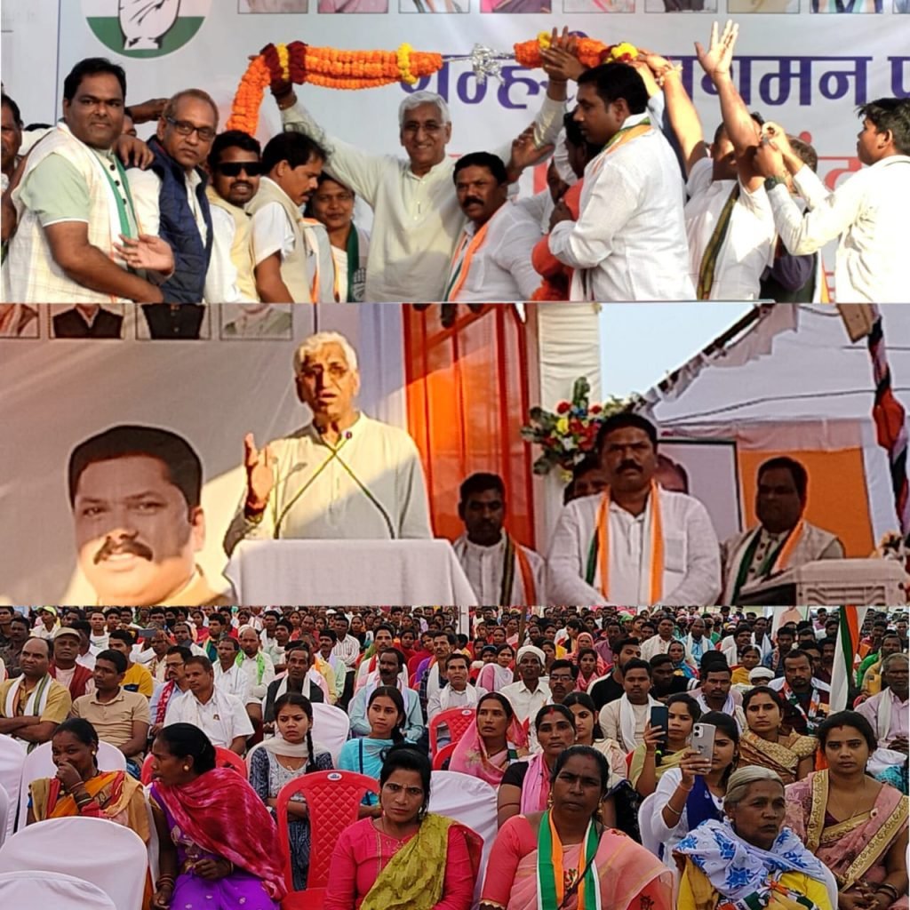 कोंडागांव जिले के केशकाल विधानसभा क्षेत्र अंतर्गत ग्राम पंचायत गम्हरी में रविवार 29 अक्टूबर को कांग्रेस पार्टी ने आम सभा का आयोजन किया जिसमे कांग्रेस के स्टार प्रचारक टीएस सिंहदेव ने सभा को संबोधित करते हुए कांग्रेस द्वारा की गई अब तक की घोषणाओं को जनता को बताया। वहीं उन्होंने छत्तीसगढ़ की जनता के हितों के लिए कांग्रेस पार्टी द्वारा की जाने वाली अन्य बड़ी घोषणाओं का जल्द एलान करने की बात कहीं है। साथ ही क्षेत्र की जनता से केशकाल विधानसभा प्रत्याशी संतराम नेताम को भारी बहुमत से जीत दिलाने की अपील की। वहीं संतराम नेताम ने सभा को संबोधित करते हुए जनता से कहा की आपने मुझ पर दो बार भरोसा जताया है तीसरी बार भी मुझे आशीर्वाद देकर सेवा का मौका दीजिए जिससे मैं आपके क्षेत्र के विकास को और आगे बढ़ा सकूं। इस कार्यक्रम के माध्यम से विधानसभा केशकाल के किसानों को कांग्रेस की घोषणा के तहत कर्ज माफी का पंजीयन फार्म भी दिया गया है। इस अवसर पर कांग्रेस के वरिष्ठ कार्यकर्ता और बड़ी संख्या में क्षेत्र के ग्रामीण जन मौजूद रहे।