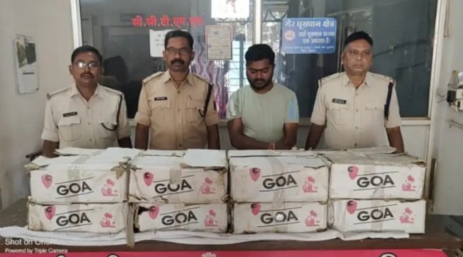 बस्तर जिलें में अपराध नियंत्रण के उद्देश्य से उप पुलिस महानिरीक्षक एवं वरिष्ठ पुलिस अधीक्षक श्री जितेन्द्र सिंह मीणा के निर्देशन में लगातार कार्यवाही की जा रही है। जिस तारतम्य में अवैध अंग्रेजी शराब रखने वाले आरोपी पर बस्तर पुलिस को कार्यवाही करने में सफलता मिली है।ज्ञात हो कि सूचना प्राप्त हुआ था कि कई दिनो से दंतेश्वर राव उर्फ दंती राव नि. संजय मार्केट ईतवारी बाजार जगदलपुर स्थित अपने घर में ऑनलाइन सट्टा एवं सट्टा पर्ची लिखकर जुआ खेलाने एवं घर में अंग्रेजी शराब छुपा कर रखा है कि सूचना पर उप महानिरीक्षक एवं वरिष्ठ पुलिस अधीक्षक श्री जितेन्द्र सिंह मीणा, अति. पुलिस अधीक्षक श्री माहेश्वर नाग के मार्गदर्शन एवं नगर पुलिस अधीक्षक श्री विकास कुमार के पर्यवेक्षण में थाना प्रभारी कोतवाली लीलाधर राठौर के नेतृत्व में टीम गठित कर, कार्यवाही हेतु रवाना किया गया था। उक्त टीम के द्वारा मुखबीर सूचना के आधार पर दंतेश्वर राव उर्फ दंती राव के घर दबिश देकर आॅनलाईन सट्टा पर्ची खिलाने का कार्यवाही किया गया। आरोपी दंतेश्वर राव उर्फ दंती राव का थाने में दर्ज पूर्व के अपराधिक रिकार्ड को देखते हुये गवाहो के समक्ष पुछताछ करने पर अपने कालीपुर स्थित फार्म हाउस में अंग्रेजी शराब रखना बताया। जिस पर टीम द्वारा विधिवत् कार्यवाही करते हुये आरोपी दंतेश्वर राव उर्फ दंती राव के कालीपुर स्थित फार्म हाउस में रेड कार्यवाही किया गया। रेड कार्यवाही के दौरान फार्म हाउस के घर में सामान रखने वाले कमरे में 10 कार्टुन गोवा व्हीस्की अंग्रेजी शराब अवैध रूप से मिला। जिसमें 09 पेटी कार्टुुन प्रत्येक पेटी में 50 नग गोवा व्हीसकी अंग्रेजी शराब प्रत्येक 180 एम.एल. कुल संख्या 450 नग पौवा कुल मात्रा 81 लीटर तथा एक कार्टुन में 22 नग गोवा व्हीस्की अंग्रेजी शराब प्रत्येक 180 एम.एल. मात्रा 3.960 लीटर, जुमला शराब मात्रा-84.960 लीटर कीमती-49,560/-रूपये को बरामद कर, जप्त किया गया है। आरोपी के विरूद्ध थाना कोतवाली में धारा 34 (2) आबकारी एक्ट का अपराध पंजीबद्ध कर, कार्यवाही किया गया है। मामले में आरोपी को गिरफ्तार कर, न्यायालय रवाना किया जा रहा है।