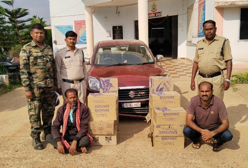झाड़ियों में कार फंस जाने से आरोपी जंगल के रास्ते भाग निकलने में कामयाब हो गए। इसके बाद जब पुलिस ने कार की तलाशी ली तो कार में किंगफिशर बीयर 9 पेटी, कैन बीयर, किंगफिशर प्रीमियम स्ट्रॉन्ग बीयर 11 पेटी, अंग्रेजी शराब मैकडॉल्स नं. 1 96 नग पौव्वा, कुल करीब 40632 रूपए की शराब बरामद की गई। इसके बाद पुलिस ने जांच के दौरान दबोच लिया है। आरोपियों में ओडिशा के उमरकोट निवासी विवेक सरकार 55 साल और दंतेवाड़ा के सुब्रत मंडल 40 साल को गिरफ्तार करने में पुलिस को कामयाबी मिली।