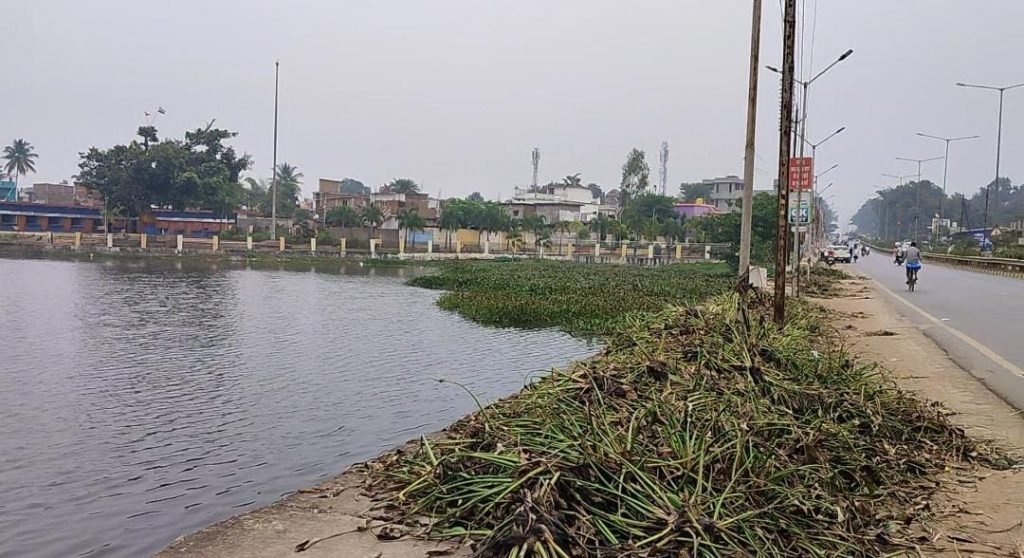 कोंडागांव – जिला मुख्यालय का आकर्षण का केंद्र बंधा तालाब वर्तमान में असहनीय बदबू का शिकार होता जा रहा है। आपको बता दे बंधा तालाब का जल पूरी तरह दूषित होने के कगार पर है। एक तरफ सौंदरीयकरण तथा स्वच्छता के नाम पर लाखों रुपए खर्च किए जा रहे है वहीं दूसरी तरफ तालाब का जल नालीयों की पानी की तरह दूषित दिख रहा है। जिसकी नियमित सफाई पर भी ध्यान नही दिया जा रहा। आपको बता दे 25 नवंबर को देखा गया की बंधा तालाब में बड़े प्रजाति के मछलियां की अचानक मौत हो रही है। वहीं लंबे समय तक मृत मछलियों की तालाब से निकासी नहीं होने के चलते उनमें सड़न पैदा हो गई है। जिसके चलते अपनी सेहत को लेकर चिंतित सुबह शाम तालाब के चारो तरफ बनाए गए प्लेटफार्म में टहलने आने वाले नगरवासियों को बदबू का शिकार होना पड़ रहा है। वहीं बंधा तालाब नेशनल हाईवे पर होने के चलते आम राहगीरों को भी असहनीय बदबू का सामना करना पड़ रहा है। इस मामले को लेकर जल्द नगर पालिका के द्वारा सफाई एवं जल शुद्धिकरण के लिए उचित व्यवस्था कराने की जरूरत है।