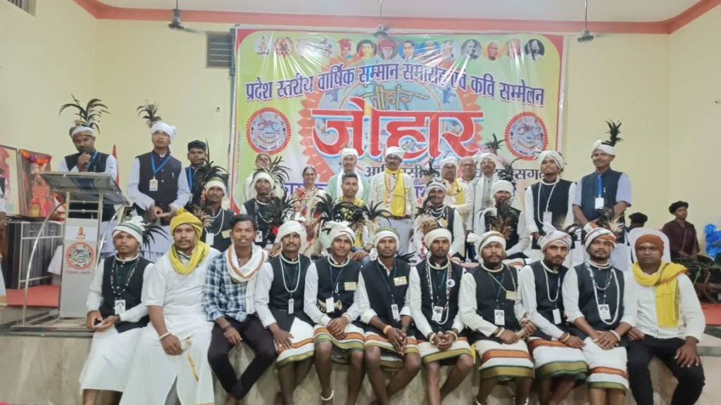 इसी जोहार आदिवासी कला मंच के तत्वाधान में 26 नवंबर संविधान दिवस के शुभ अवसर पर प्रदेश स्तरीय वार्षिक सम्मान समारोह एवं काव्य पाठ का आयोजन नगरी नगर के हल्बा आदिवासी समाज भवन शक्ति सदन में रखा गया था। जिसमें छत्तीसगढ़ के अलग-अलग जिलों से सैकड़ो की संख्या में आदिवासी कलाकार, कवि, लेखक,साहित्यकार, खिलाड़ी तथा कला प्रेमी अपनी आदिवासी वेशभूषा में शामिल हुए।
