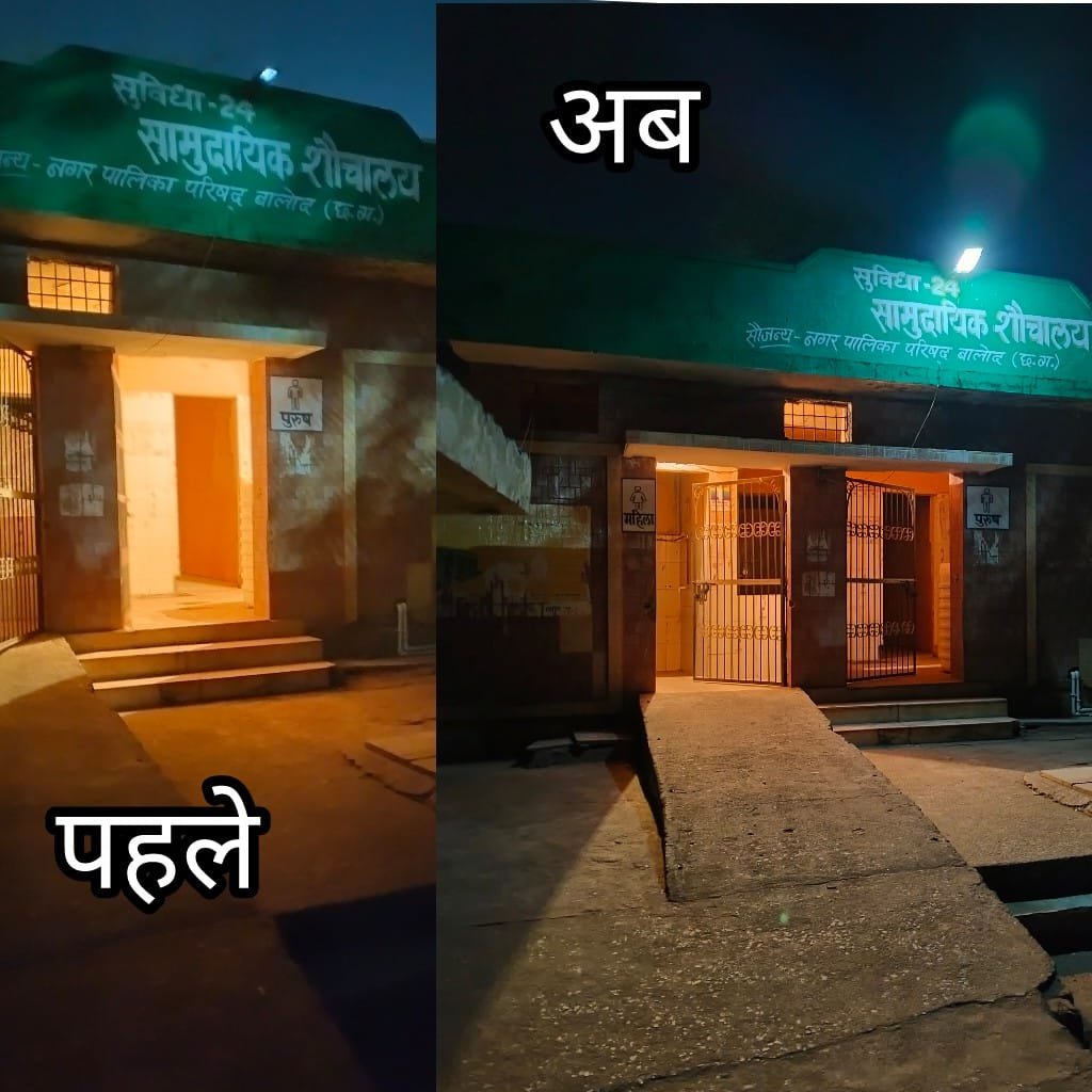 बालोद नगर पालिका क्षेत्र अंतर्गत पुराना बस स्टैंड स्थित सार्वजनिक शौचालय में विगत दिनों अंधेरे का आलम था जिसके बाद हमारे ब्यूरो रिपोटर की खबर के बाद नगर पालिका प्रशासन ने इसकी सुध लेते हुए प्रकाश व्यवस्था की, जिसके बाद से पुराना बस स्टैंड व्यापारी संघ के सदस्यों ने राहत की सांस ली है ज्ञात हो कि इस सार्वजनिक शौचालय में अंधेरा का यह आलम था कि लोग वहां जाने से डरते थे वही अंधेरा का फायदा उठाकर असामाजिक तत्त्व के नशेड़ी युवक वहां नशापान करते दिखाई देते थे वहीं आसपास में दुकानों में कार्यरत महिला कर्मचारियों की परेशानी बढ़ती जा रही थी रात के अंधेरे में युवाओ के जमावड़े के बाद वह लोग जाने से डरने लगी थी इस बात को प्रमुखता से उठाते हुए जन सरोकार और समस्या का हल तुरन्त होने पर व्यापारियों ने राहत की सांस ली है