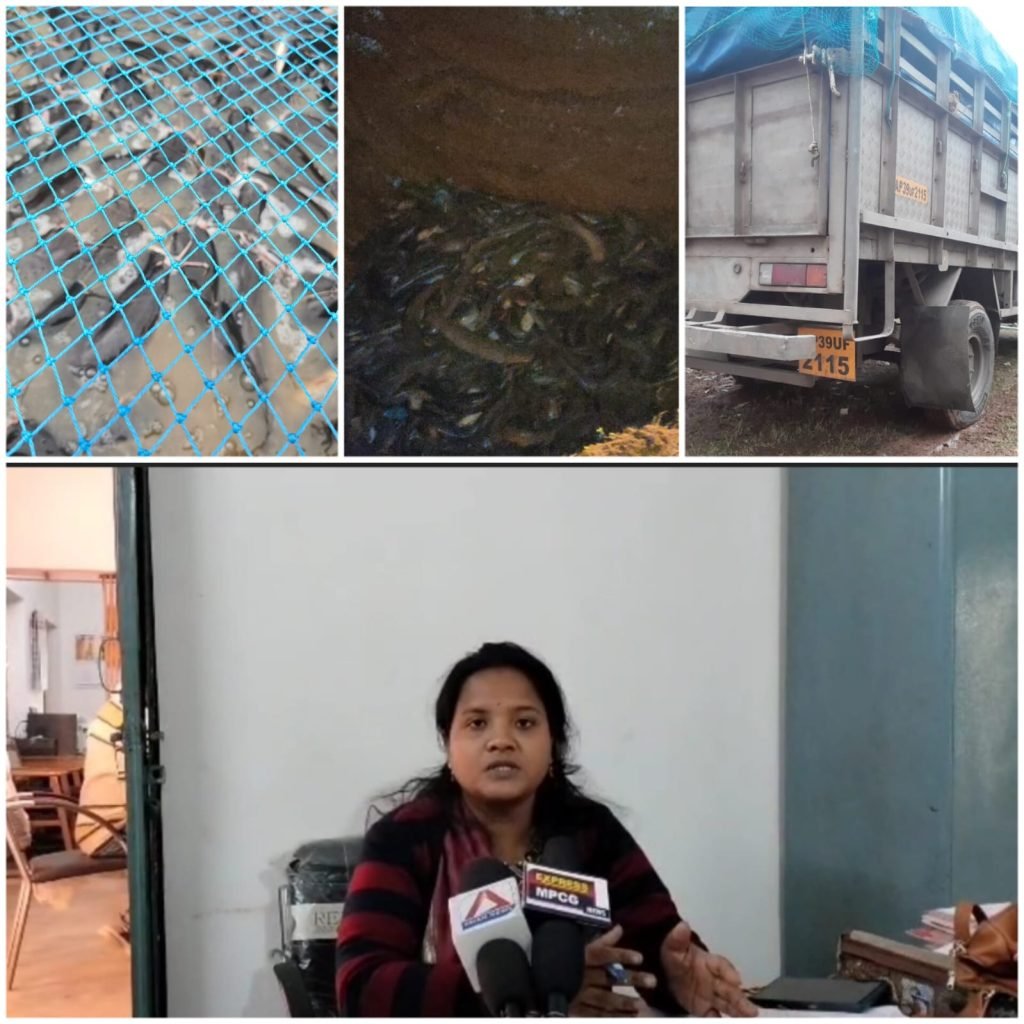 कोंडागांव जिले के केशकाल घाट में पुलिस एवं मत्स्य विभाग ने बड़ी कार्यवाही करते हुए अवैध परिवहन करते हुए पिकअप में लोड भारी मात्रा में प्रतिबंधित थाई मांगुर मछली को बरामद कर जप्त किया है। प्रतिबंधित थाई मांगुर मछली को जप्त करने के बाद मत्स्य विभाग के अधिकारीयों ने कानूनी प्रक्रिया के पश्चात जप्त मछलियों को कोंडागांव लाकर नष्ट किया है। कोंडागांव सहायक मत्स्य अधिकारी मीनाक्षी मरकाम ने जानकारी देते हुए बताएं कि आंध्रप्रदेश से 8 टन (800 किलोग्राम) प्रतिबंधित थाई मांगुर मछलीयों का अवैध परिवहन किया जा रहा था जिसकी पुष्टि के बाद विभाग ने प्रतिबंधित मछलियों को पिकअप सहित जप्त कर नष्ट करने की कार्यवाही की है। वहीं पिकअप चालक के खिलाफ अपराध पंजीबद्ध कर लिया गया है।