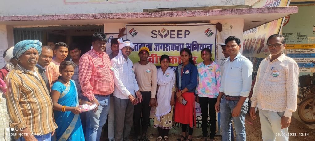 *राष्ट्रीय मतदाता दिवस पर लोकतंत्र में अपनी भागीदारी सुनिश्चित करने संकुल प्राचार्य मेडो हेमंत श्रीवास्तव के निर्देशन में सभी 18 वर्ष पूर्ण कर चुके सभी युवाओ को अपना मतदान परिचय पत्र बनवाने हेतु प्रेरित करने हेतु 17 वर्ष पूर्ण कर ग्राम के नए मतदाता का ग्राम पंचायत मेडो के सचिव द्वारा तिलक ग्राम पंचायत मेडो के पटेल मेहर सिंह कोमरा जी के द्वारा बैच लगाकर स्वागत किया गया। संकुल मेडो अंतर्गत मतदान केंद्र मेडो के बीएलओ अनिल गायकवाड़,मतदान केंद्र सुखई रामदयाल नरेटी,मतदान केंद्र भूसकी में नाम जुड़वाने हेतु राकेश रावटे और सेक्टर दुर्गुकोंदल अन्तर्गत आने वाले नए मतदाता मतदान केंद्र दुर्गुकोंदल में महेश दीवान, खुटगांव में पंकज नरेटी, हहालद्दी नरेंद्र साहू, कर्रामाड़ में ललित टाडिया, कोडापाखा में रज्जू राम दर्रो,कोपाकाटेल में रायसिंह नेताम जी से मतदाता सूची में नाम जुड़वाने हेतु संपर्क करे।इस अवसर पर बीएलओ अनिल गायकवाड़ सरपंच ग्राम पंचायत मेडो अनुज खरे,कामेश सिन्हा, गोविंद कोमरा पटवारी हल्का मेडो,शिक्षक उपाथित रहे।*