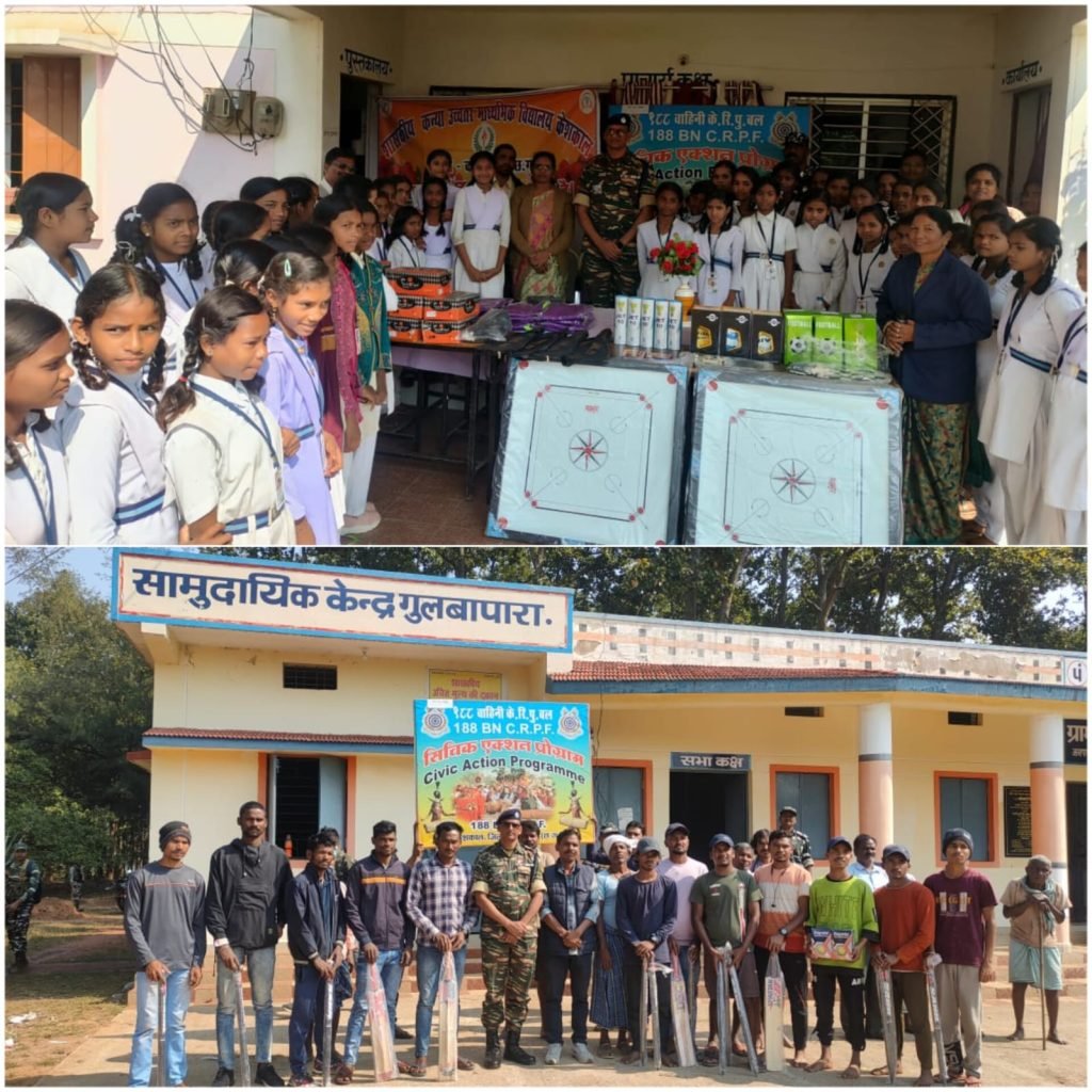 इसी कम में 188 बटालियन के द्वारा सिविक एक्शन प्रोग्राम का आयोजन करते हुए गाँव के युवाओं एवं स्कूल छात्र/छात्राओं में खेल-कूद की भावना को बढाने के लिए खेल सामग्री का वितरण किया जा रहा है। ग्रामीणों व सुरक्षावलों के बीच बेहतर व मधुर संबंधों को बढावा मिल रहा है देश के विकास व ईलाके में में शांति व्यवस्था बनाये रखने हेतु ग्रामीणों व सुरक्षावलों के बीच मधुर संबंध होना आवश्यक है। इस कार्यक्रम का उद्देश्य ग्रामीणों और जवानों के बीच परस्पर विश्वास एवं बन्धुत्व की भावना को आगे बढाना है, जो उम्मीद के मुताबिक पूरा हो रहा है तथा क्षेत्र के लोगों में सुरक्षाबलों के प्रति विश्वास की भावना जागृत हो रही है।