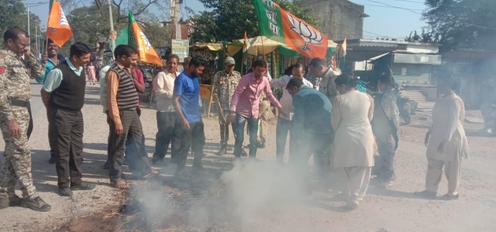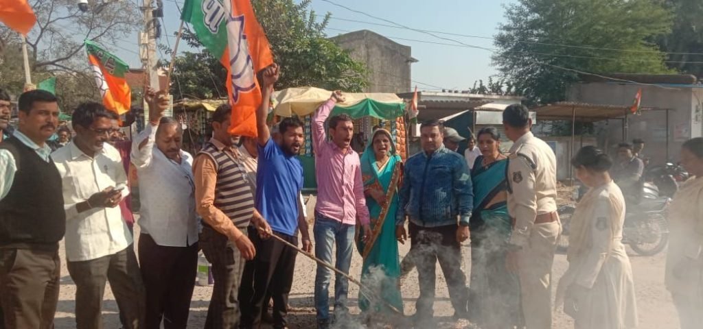 नरहरपुर- संसद भवन में विपक्षी सांसदों दा्रा देश के उप राष्ट्रपति जगदीप धनखड जी के अपमान किए जाने के विरोध में भाजपा मंडल नरहरपुर दा्रा कांग्रेस नेता व सांसद राहुल गांधी व टीएमसी सांसद का पुतला फूंक कर जमकर विरोध प्रदर्शन किया गया!