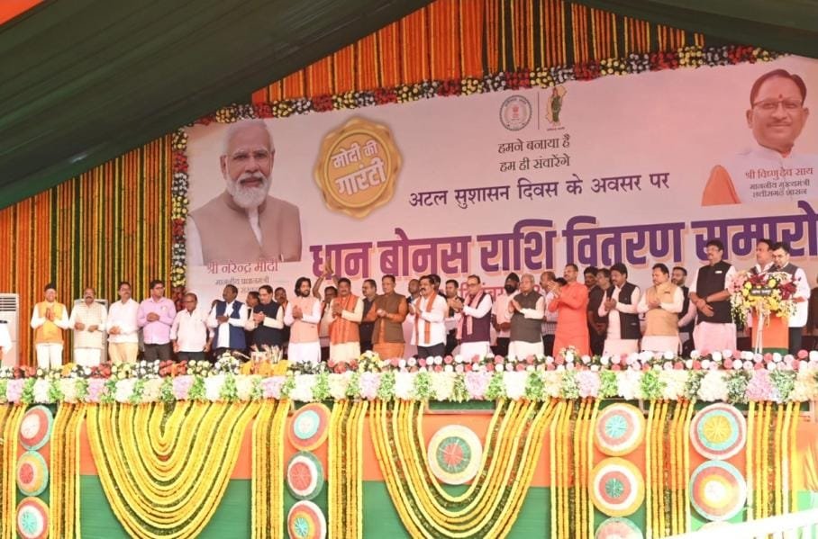 रायपुर / मुख्यमंत्री विष्णु देव साय ने छत्तीसगढ़ राज्य के 11 लाख 76 हजार 815 किसानों को 3 हजार 7 सौ 16 करोड़ रुपए के बकाया बोनस राशि का वितरण किया।