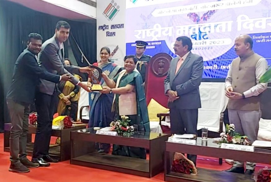 कांकेर 13वें राष्ट्रीय मतदाता दिवस इंदिरा गांधी कृषि विश्वविद्यालय रायपुर के सभागार में प्रदेश के महामहिम राज्यपाल सुश्री अनुसुइया उइके की अध्यक्षता में आयोजित किया गया। जिला निर्वाचन अधिकारी एवं कलेक्टर डॉ प्रियंका शुक्ला के मार्गदर्शन में विधानसभा क्षेत्र 80 भानुप्रतापपुर(अजजा) में उप चुनाव को शांतिपूर्ण ढंग से संपन्न कराने के लिए कांकेर जिला को राज्य स्तरीय सर्वश्रेष्ठ जिला पुरस्कार के लिए सम्मानित किया गया। जिला पंचायत के मुख्य कार्यपालन अधिकारी सुमित अग्रवाल और उप जिला निर्वाचन अधिकारी एवं एसडीएम कांकेर धनंजय नेताम ने पुरस्कार एवं प्रशस्ति पत्र प्राप्त किए। इसी प्रकार जिले में मतदाता जागरूकता कार्यक्रम को सफल बनाने के लिए सहायक नोडल अधिकारी स्वीप रामप्रकाश मिरे तथा शासकीय उच्चतर माध्यमिक विद्यालय कुल्हाड़ कट्टा के व्याख्याता अशोक सिंह ठाकुर को विशेष जूरी पुरस्कार से सम्मानित किया गया।