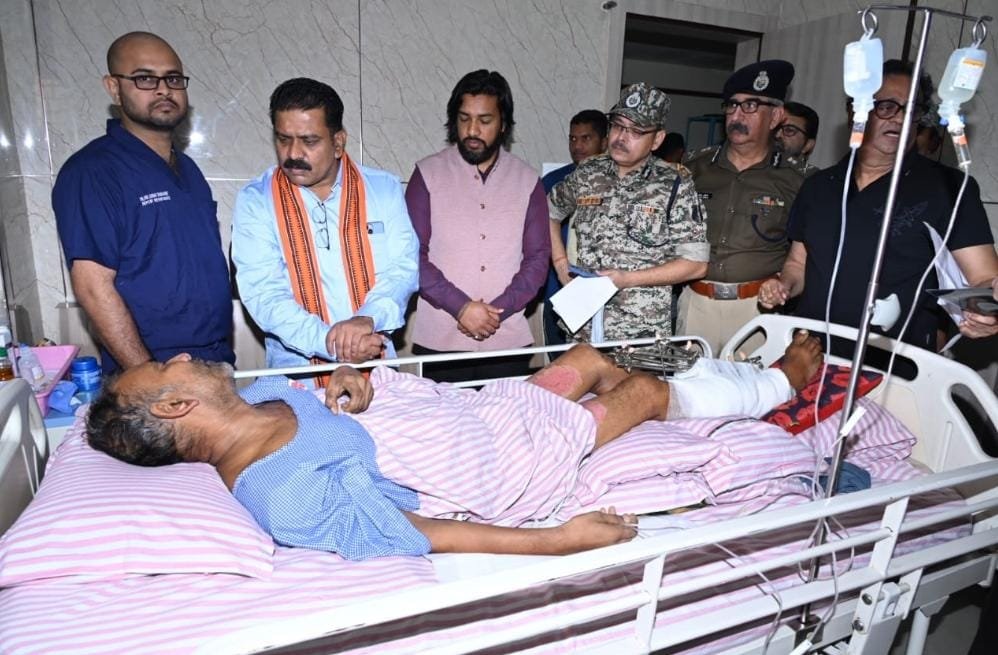 रायपुर, / बीजापुर के गंगालूर इलाके में जवानों पर नक्सलियों द्वारा की गई फायरिंग के बाद घायल जवानों के उपचार की स्थिति जानने गृह मंत्री विजय शर्मा अस्पताल पहुंचे।