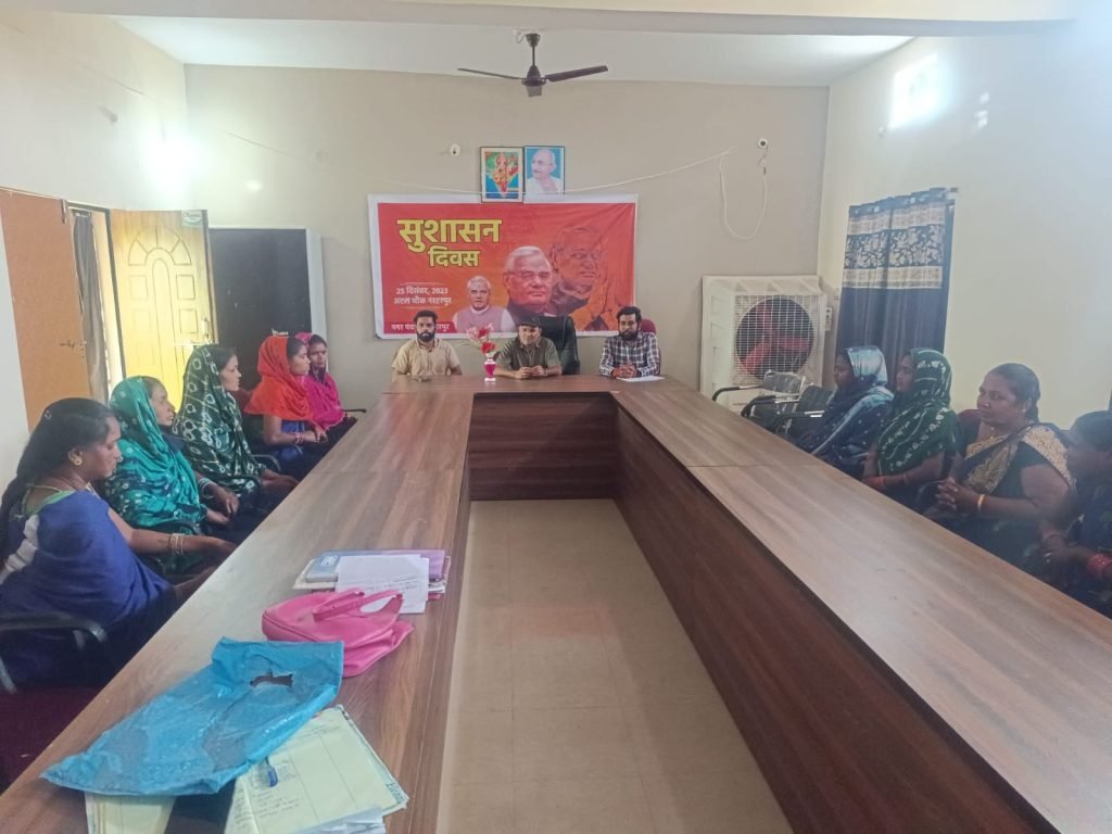 नरहरपुर. आज नगर पंचायत नरहरपुर के सभा कक्ष मे रोशन सिंह ठाकुर मुख्य नगर पालिका अधिकारी, गोविंदा देवांगन उप अभियंता , आकाश सोना प्रोजेक्ट इम्लीमेंटेशन यूनिट के कर्मचारी एवम मिशन क्लीन सिटी के अंतर्गत डोर टू डोर कचरा कलेक्शन करने वाली महिला समूह के सदस्यो , व सफाई कर्मचारियों की उपस्थिति में समस्त मिशन क्लीन सिटी के सदस्य एवम सैनिटरी वर्क्स लोगों की कार्यों की चर्चा एवं परिचर्चा की गई जिस पर उन्हें निर्देशित किया गया कि डोर टू डोर कचरा कलेक्शन एवम नगर की नालियों व नगर की साफ सफाई का नियमित संचालन अच्छे तरीके से हो जिसके लिए रूट चाट बनाकर अमल में लाने एवम सभी कर्मचारियों को समय पर आने व कार्यलय द्वारा दिए गए वर्दी में पहनकर काम पर आने कहा कर समझाइश दी गई , उन्हें 04 प्रकार के कचरे जैसे सूखा, गीला हेजार्डियस (कांच , ब्लेड आदि)और सेनेटरी (डायपर एवम नैपकिन) को भी प्रत्येक घर से अलग-अलग रूप में एकत्रित करना एवं आम जनता को समझाने के लिए बताया गया।