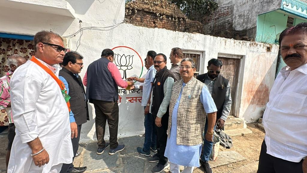 दीवार लेखन में भाजपा प्रदेश मंत्री महेश जैन, भरत मटियारा,राजा देवनानी, राजीव लोचन सिंह, हलधर साहू, मंडल अध्यक्ष दीपक खटवानी, टेकेश्वर जैन , गिरधर यादव, विजय लखवानी, गजेन्द्र यादव, तनुज ठाकुर, लल्ला ,भट्टा ठाकुर व कार्यकर्ता उपस्थित थे