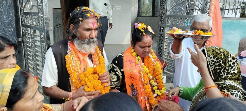नरहरपुर – पूरे देश मे माहौल जय श्री राम के नारों जे गूंज रहा है। लोगों में काफी उत्साह का माहौल है। संतोषी दुर्गा के आंखों में खुशी के आँशु सब कुछ बयां कर रही था। 18 जनवरी को नगर में निवासरत संतोषी दुर्गा व अंतागढ़ के पूर्व विधायक भोजराज नाग को राम लला की प्राण प्रतिष्ठा के आमंत्रण पर नगरवाशियो द्वारा नगर के माँ शीतला मंदिर प्रांगण में माँ शीतला के पूजा पाठ के साथ भव्य स्वागत कर बजे गाजे के साथ विदाई किये, नगर के रामभक्तो द्वारा माँ शीतला मंदिर से स्वागत रैली निकल कर नीलकंठेश्वर मदिर तक आकर विदाई किये विदाई पूर्व मंदिर में भगवान शिव का भी आराधना कर अयोध्या के लिए विदाई हुए वही रामलला की भूमि अयोध्या में भव्य और नव्य राम मंदिर प्राण प्रतिष्ठा को लेकर नगर नरहरपुर पूरी तरह से भक्तिमय हो चूका हैं | नगर के हर जगह भगवा ध्वज लहरा रहा हैं | वही 18 जनवरी गुरुवार को जिला के दो व्यक्ति को रामलला के बुलावा का आमंत्रण मिला और जब इस कार्यक्रम में शामिल होने के विदाई किये तो आस्था और श्रद्धां का ये भव्य और नव्य नजारे से नगर नरहरपुर रामभक्ति में डूबा दिखा | विदाई में बड़े बड़े भगवा ध्वज लिए महिलाओ से लेकर युवा तक उत्साह में दिखे और हर कोई जय श्री राम के के जयकारे लगाते रहे |इस अवसर पर जनपद पंचायत के सीईओ पी के गुप्ता, नगर पंचायत से लेखापाल ऋषभ सिंह, स्वास्थ्य विभाग से टीम व माँ शीतला के पुजारी रामनाथ नेताम, मुकेश संचेती, शीतल साहू, पंचू राम साहू, नितेश मगेंद्र, पुष्कर सिन्हा, राजेश नाग, ओमेश सोनवंशी, दीपक यादव, सुशीला सिन्हा, उमा सिन्हा, विनोद साहू, आशा रावटे, मनोरमा साहू, रुखमणि सिन्हा, चंद्र किरण बघेल, विशाल पगरिया, आकाश साहू, जयंत सिन्हा, बंटी निषाद सहित सरस्वती शिशु मंदिर के समस्त स्टाप व बच्चे व नगरवासी उपस्थित रहे l