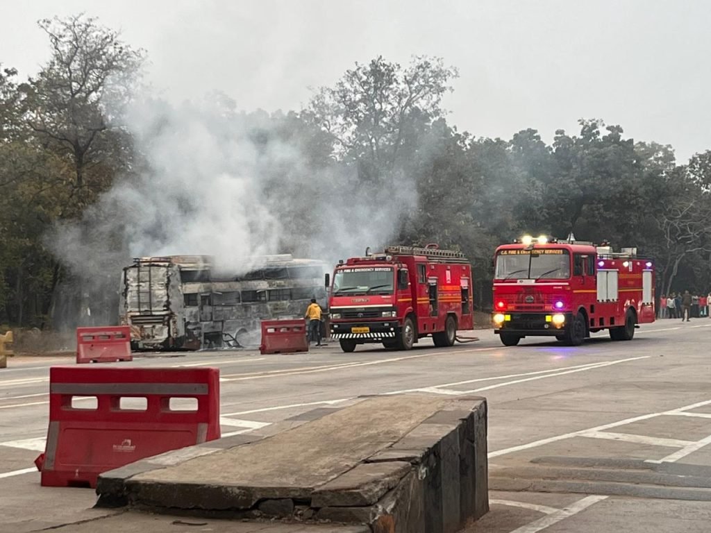 कांकेर— चारामा धमतरी घाट जगतरा टोल टेक्स के पास अम्बे ट्रेवल्स बस में आग लग गई आग लगने की वजह शॉर्ट सर्किट बताई जा रही है बस यात्रियों से भरी हुई थी आग लगने की खबर लगते ही यात्रीगण बस से तुरंत उतर गए धीरे धीरे आग पूरे बस में लग गई मोके पर फायर बिग्रेड की गाड़ी पहुँचकर आग पर काबू पाने का प्रयास किया गया तब तक आग पूरे बस में लग चुका था कोई भी यात्री घायल नही हुआ पुलिस मौके पर पहुँचकर जांच में लग गई