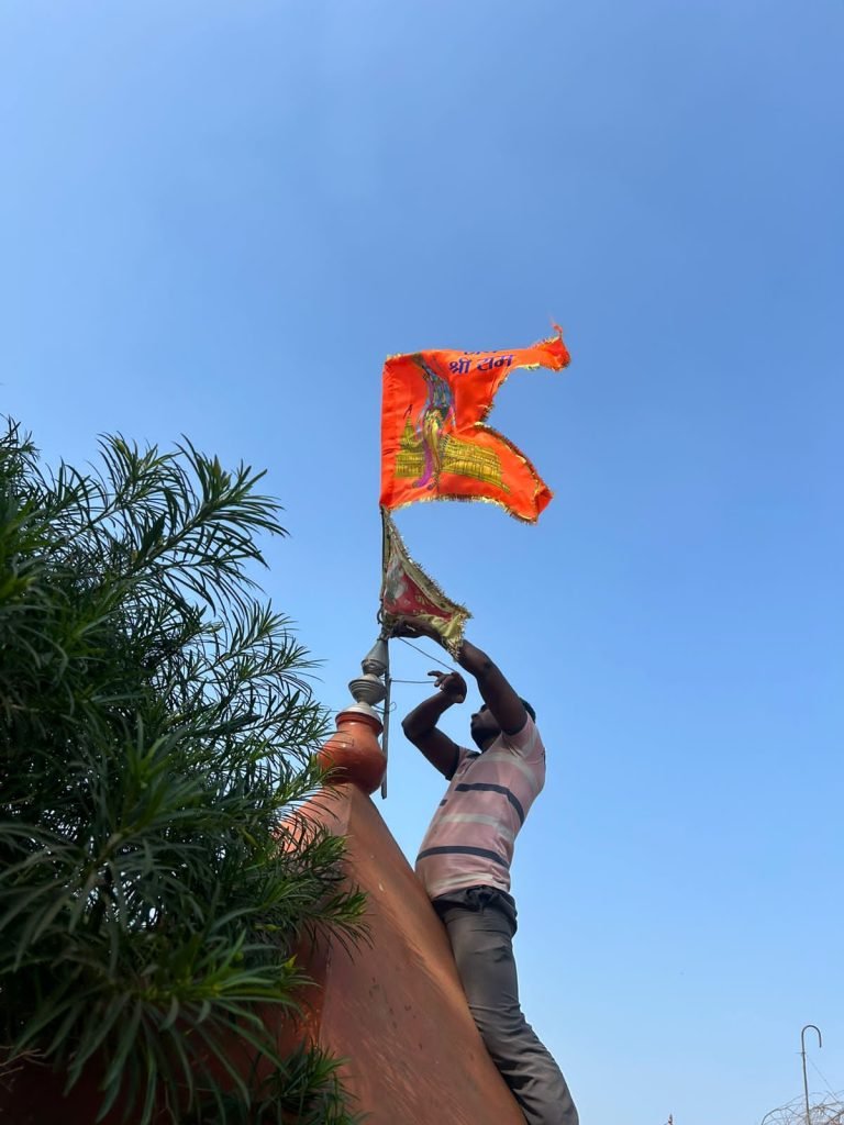 जय श्री राम के जयकारो के साथ मंदिरों में भगवा ध्वजारोहण;