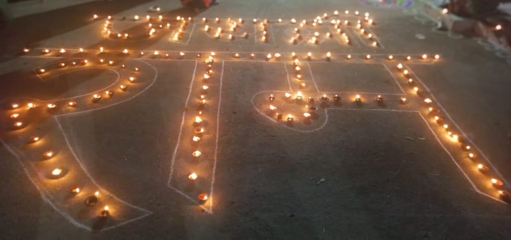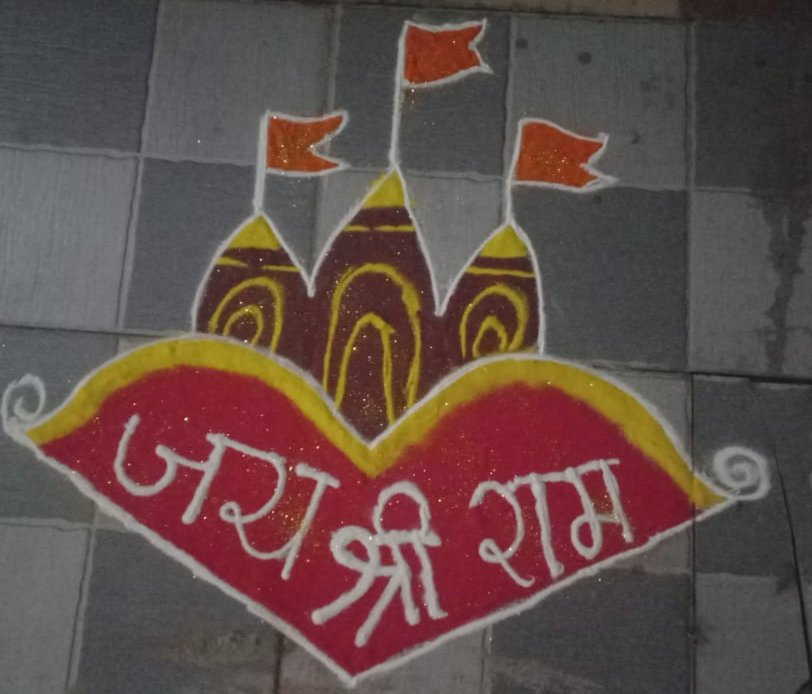 रायपुर– आज अयोध्या में श्री राम लला के प्राण प्रतिष्ठा के अवसर पर रायपुर सिंचाई कालोनी लालपुर परिसर में स्थित रामेश्वरम शिव मंदिर मे बड़े ही धूमधाम से राम लला का उत्सव मनाया गया सुबह से कालोनीवासियों द्वारा मंदिर की साफ सफाई कर सजावट की गई मंदिर परिसर में रंगोली से राम लला मंदिर बनाया गया दिन भर मंदिर में पूजा पाठ अन्य कार्यक्रम चलता रहा हैं शाम होते ही मंदिर में दिया जलाकर मंदिर को दियो से सजाया साथ ही दियो से सजाते हुवे जय श्री राम लिखा गया दीपोत्सव के बाद मंदिर परिसर में आतिश बाजी की गयी जिसके बाद सभी को प्रसाद वितरण कर महाभंडारा का आयोजन कालोनी वासियो द्वारा किया गया इस कार्यक्रम को सफल बनाने में सभी कालोनीवासियों का सहयोग रहा राम लला के इस कार्यक्रम को लेकर सभी कालोनीवासियों के चेहरे में खुशी दिखाई दे रही थी सभी एक दूसरे से जय श्री राम कहकर मिलते रहे