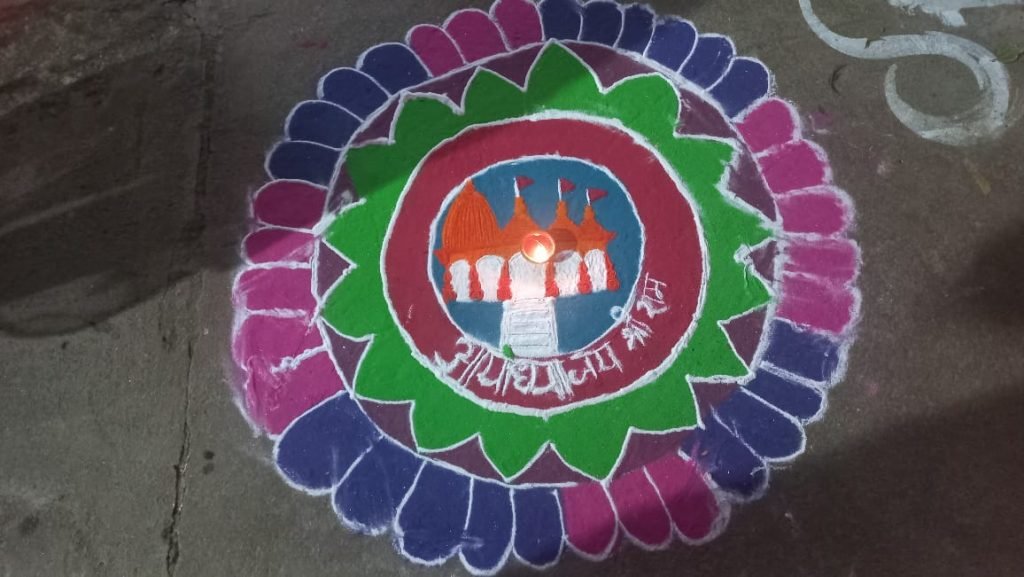 रायपुर– आज अयोध्या में श्री राम लला के प्राण प्रतिष्ठा के अवसर पर रायपुर सिंचाई कालोनी लालपुर परिसर में स्थित रामेश्वरम शिव मंदिर मे बड़े ही धूमधाम से राम लला का उत्सव मनाया गया सुबह से कालोनीवासियों द्वारा मंदिर की साफ सफाई कर सजावट की गई मंदिर परिसर में रंगोली से राम लला मंदिर बनाया गया दिन भर मंदिर में पूजा पाठ अन्य कार्यक्रम चलता रहा हैं शाम होते ही मंदिर में दिया जलाकर मंदिर को दियो से सजाया साथ ही दियो से सजाते हुवे जय श्री राम लिखा गया दीपोत्सव के बाद मंदिर परिसर में आतिश बाजी की गयी जिसके बाद सभी को प्रसाद वितरण कर महाभंडारा का आयोजन कालोनी वासियो द्वारा किया गया इस कार्यक्रम को सफल बनाने में सभी कालोनीवासियों का सहयोग रहा राम लला के इस कार्यक्रम को लेकर सभी कालोनीवासियों के चेहरे में खुशी दिखाई दे रही थी सभी एक दूसरे से जय श्री राम कहकर मिलते रहे