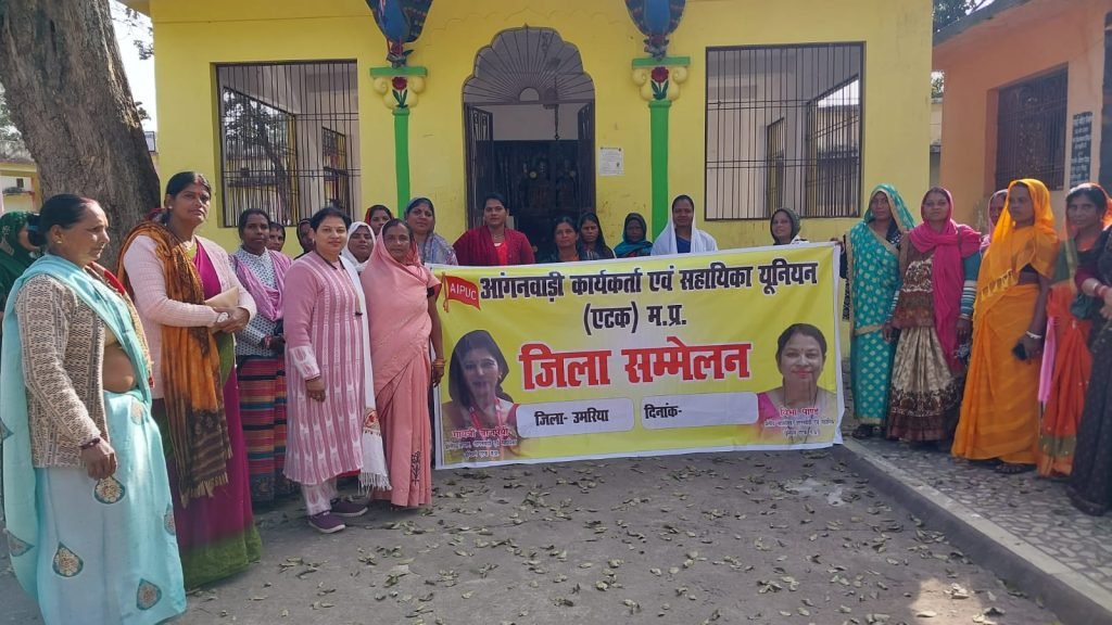 दिनांक 28 जनवरी 2024 को उमरिया में आंगनबाड़ी कार्यकर्ताओं एवं सहायिकाओ का कॉमरेड ममता तिवारी की अध्यक्षता में एक बैठक हुई बैठक में 50 से अधिक कार्यकर्ता ज़िले के विभिन्न हिस्सों से आए थे आंगनबाड़ी कार्यकर्ता एवं सहायिका यूनियन एटक मध्य प्रदेश के प्रांतीय महासचिव कॉमरेड विभा पांडे मार्गदर्शन के लिए बैठक में विशेष रूप से मौजूद थी कॉमरेड विभा पांडे ने अपने उद्बोधन में कहा कि तीन माह का आंगनबाड़ी कार्यकर्ताओं का रुका हुआ मानदेय हमारे लिए चुनौती है हम लगातार प्रयास कर रहे हैं कि मानदेय का भुगतान शासन अविलंब करें उन्होंने कहा एटक के प्रयास से विगत वर्ष में सभी आंगनबाड़ी कार्यकर्ताओं के खाते में रंगाई पुताई के नाम पर 8 हज़ार वे शासन ने डाला था साड़ी का कलर हमारी बहनों को पसंद नहीं था हमने हैं अतिरिक्त प्रमुख सचिव महिला एवं बाल विकास से मिलकर ड्रेस को बदलवाया था और अब वे महाराष्ट्र में आंदोलन के कारण सरकार को घोषणा करनी पड़ी कि आंगनबाड़ी कार्यकर्ताओं को पेंशन एवं ग्रेच्युटी का भुगतान करेंगे हम मध्य प्रदेश में भी इसकी लड़ाई को तेज करेंगे 16 फ़रवरी को आंगनबाड़ी कार्यकर्ताओं के नियमितीकरण एवं 26, हज़ार रूपये मानदेय के लिए पूरे देश में आंगनबाड़ी कार्यकर्ता हम सहायिका हड़ताल पर रहेंगे उमरिया ज़िले में भी हड़ताल कर हम सरकार को ज्ञापन देंगे आज हमारे लिए ख़ुशी की बात है उमरिया ज़िले की सबसे लड़ाकू नेता BMS के पूर्व जिलाध्यक्ष बहन ममता तिवारी मैं लाल झंडा उठाकर सरकार को चुनौती देने का शपथ लिया है वही वाहन हैं लता सिंह उनके कंधे से कंधा मिलाकर साथ देने का ब्रत लिया है अंजना ने पहले ही लाल झंडा उठा लिया था यह एक संयोग है कि एटक के संस्थापक अध्यक्ष लाला लाजपत राय जी का आज जन्मदिन है आज ही उमरिया ज़िले में आंगनबाड़ी कार्यकर्ता एवं सहायिकाओं के बी च एटक का हमारी बहनों के तकलीफों को दूर करेगा हम संघर्ष करके आगे बढ़ेंगे इस अवसर पर नव निर्वाचित जिलाध्यक्ष कॉमरेड ममता तिवारी ने कहा कि मैं ज़िंदगी भर आंगनबाड़ी कार्यकर्ताओं के लिए संघर्ष करती रही हूँ समुचा उमरिया जिला जानता है कि अब हमें सही यूनियन मिली है यहाँ संघर्ष करने से रोकने वाला कोई नहीं है सरकार की भाषा बोलने वाला कोई नहीं है जिला महासचिव कामरेड हेमलता सिंह कहा समुचित ज़िले में लाल झंडे का फैलाव पर संघर्ष को तेज करेंगे इस अवसर पर जिला कमेटी का गठन किया गया जिसमें कार्यवाहक अध्यक्ष कॉमरेड बंदना पाण्डेय सहसचिव कामरेड मीना सिंह उपाध्यक्ष कामरेड अनीता साहू उपाध्यक्ष कॉमरेड कल्पना राठौर सहसचिव कामरेड कमला द्विवेदी सहसचिव कामरेड सविता द्विवेदी उपाध्यक्ष कामरेड रेखा द्विवेदी उपाध्यक्ष कामरेड सकुन्तला पांडेय आदि बनाए गए इस सम्मेलन में