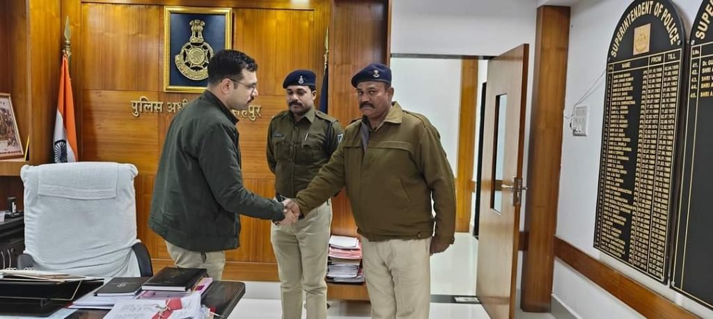 नरसिंहपुर । पुलिस अधीक्षक, अमित कुमार द्वारा दोनों कर्मचारियों को किया नगद पुरूष्कार से पुरूष्कृत।