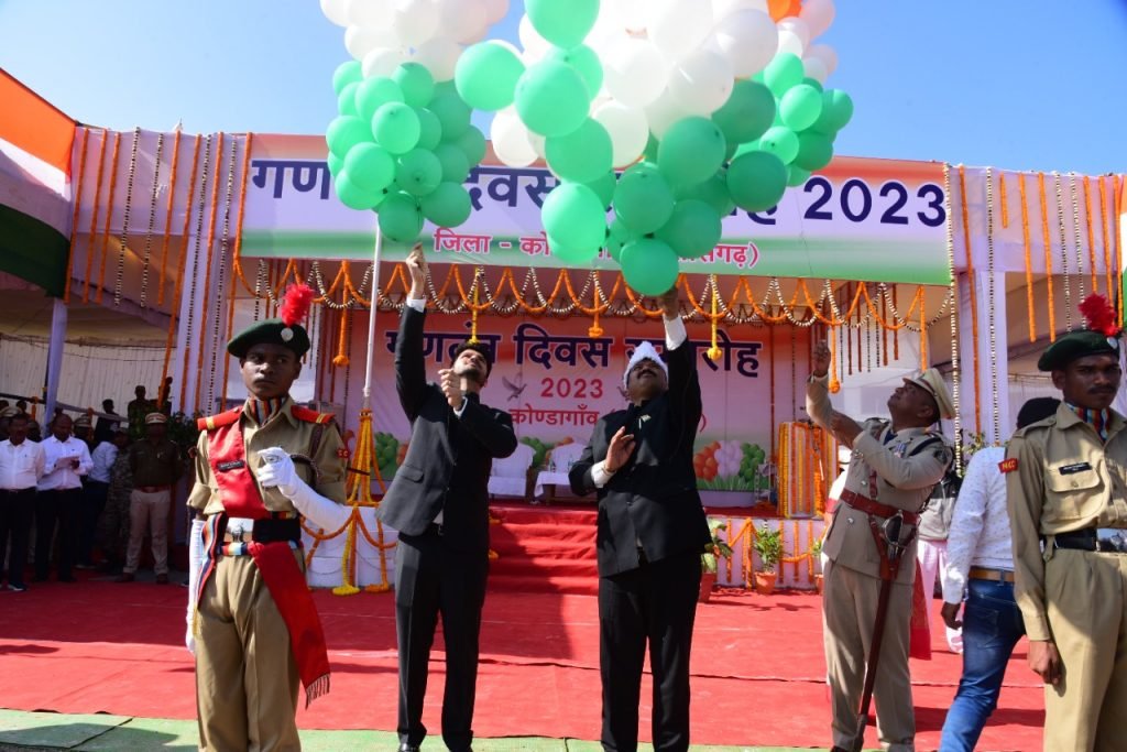 कोण्डागांव – जिले में 74वाँ गणतंत्र दिवस समारोह उत्साह और हर्षोल्लास के साथ मनाया गया। मुख्य अतिथि छत्तीसगढ़ विधानसभा उपाध्यक्ष श्री संतराम नेताम ने जिला मुख्यालय कोण्डागांव के विकास नगर स्टेडियम में आयोजित मुख्य समारोह में ध्वजारोहण कर परेड की सलामी ली। इसके साथ ही कलेक्टर दीपक सोनी और पुलिस अधीक्षक दिव्यांग पटेल के साथ परेड का निरीक्षण किया। वहीं शांति के प्रतीक श्वेत कपोत तथा उत्साह के प्रतीक रंगीन गुब्बारे आसमान में छोड़े गये। इस दौरान भारत तिब्बत सीमा पुलिस बल, जिला पुलिस बल, नगर सेना के जवानों सहित नेशनल केडेट कोर तथा राष्ट्रीय सेवा योजना के कैडेटों ने देश सेवा की जज्बे के साथ आकर्षक मार्चपास्ट किया।